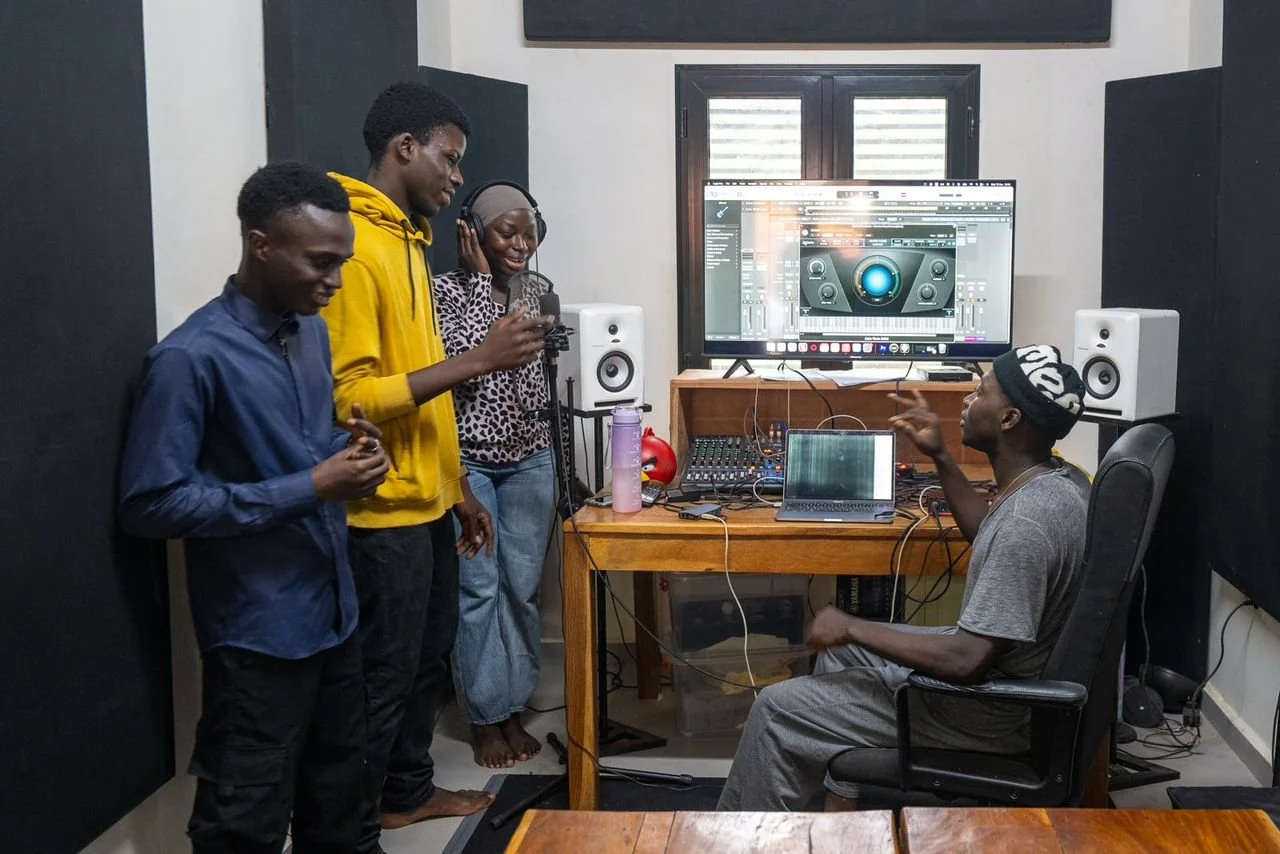 A grant for a Permaculture training center in Togo, West Africa, first connected Nick Morgan of the Rex Foundation with Hannah Apricot of the Abundant Earth Foundation. Soon after, a young man from Kenya’s Kakuma Refugee Camp requested support to build a recording studio. Seeking knowledge from other organizations already creating modest recording studios led to the collaboration with David Satori of Dirtwire and Schree Chavdarov with the LEAF Global Arts organization. From there arose the vision of a global network of low-budget/high-impact recording studios: The SunRise Studios Collective. The first studio, completed in April 2022 in Kakuma, Kenya, was made possible by a generous solar system donation from Empowered By Light. SRS now has eight fully operational community studios that combine music, permaculture, and collective development.